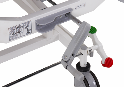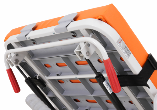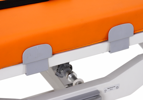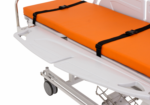 Pengaman samping dapat dilipat rata sejajar dengan permukaan stretcher untuk memudahkan pemindahan pasien dengan aman dan efisien